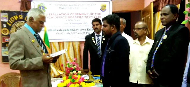 இந்நிகழ்வில் நிர்வாக பதிவு உத்தியோகத்தராகவும், பிரதம விருந்தினராகவும் 2017/2018 நிர்வாக ஆண்டின் Cabinet Officer Lion P.R.பிரதாபன் அவர்கள் கலந்துகொண்டிருந்தார். 2017/2018 நிர்வாக ஆண்டிற்கான தலைவராக Lion A..கந்தவேள் , செயலாளராக Lion N.சஞ்ஜீவ் , பொருளாளராக Lion P.பிரேமிதன் ஆகியோர் தெரிவு செய்ப்பட்டிருந்தனர்.